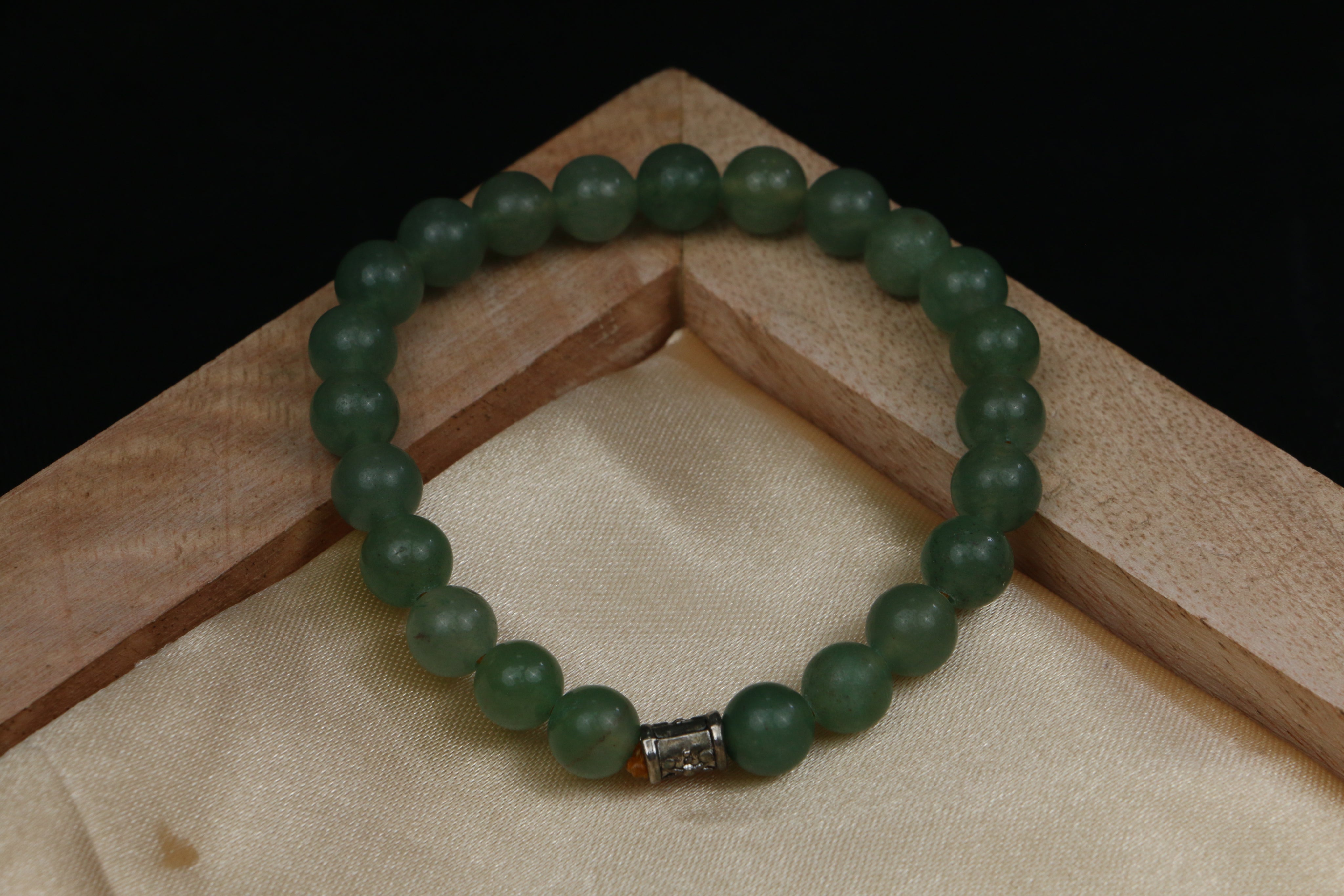 This elegant stretch bracelet is made with smooth Green Aventurine beads, enhanced with a metallic antique-style charm. Revered for its lush green tone and positive vibrations, Green Aventurine attracts luck, wealth, and heart-centered growth. It's a symbol of optimism, prosperity, and emotional healing.